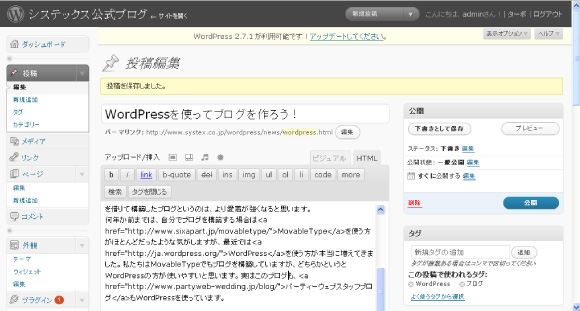 何年か前までは、自分でブログを構築する場合はMovableTypeを使う方がほとんどだったような気がしますが、最近ではWordPressを使う方が本当に増えてきました。私たちはMovableTypeでもブログを構築していますが、どちらかというとWordPressの方が使いやすいと思います。実はこのブログも、パーティーウェブスタッフブログもWordPressで構築しました。